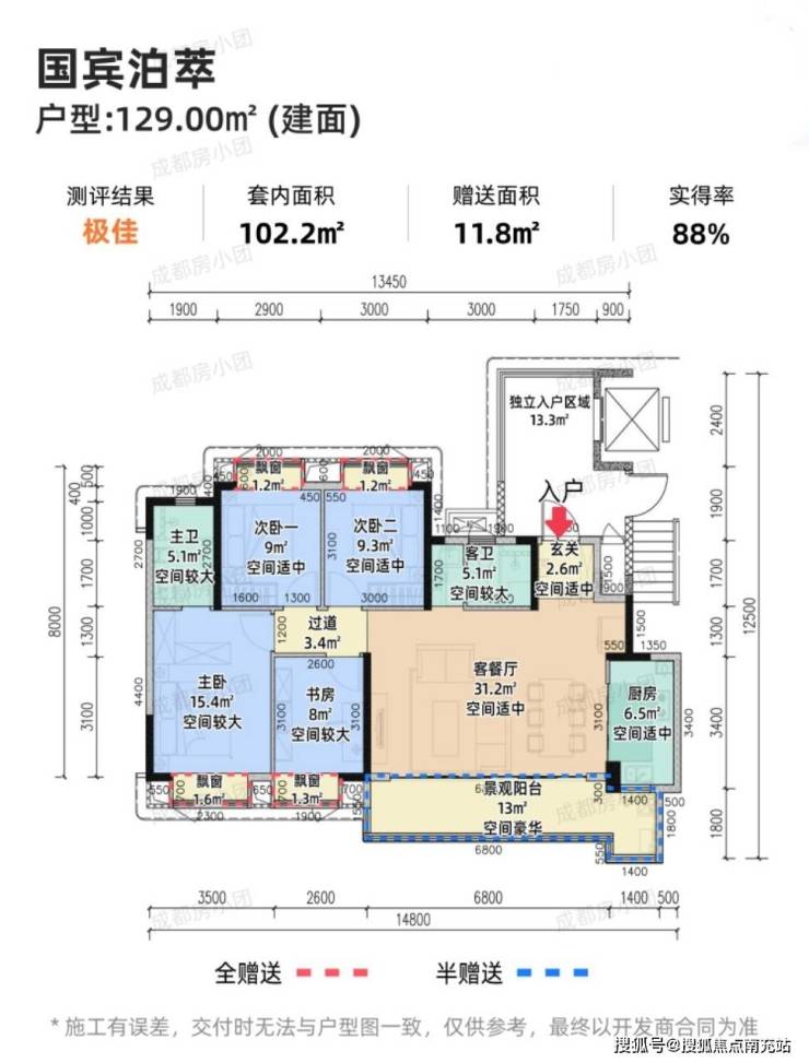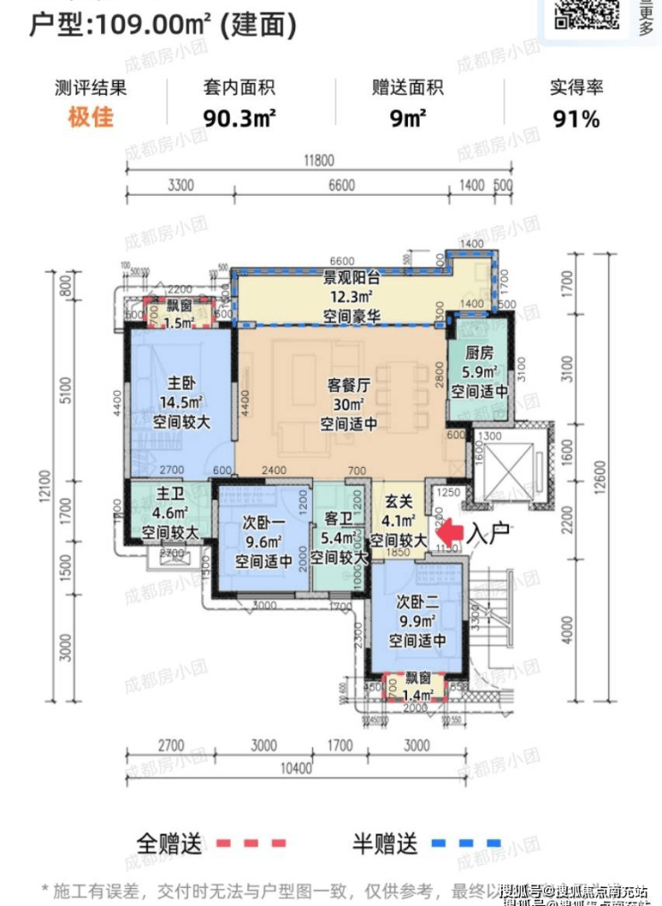 【 方正实用】:整体户型较为方正,空间利用率高,效减少面积浪费,为居住者提供更多实际使用空间。